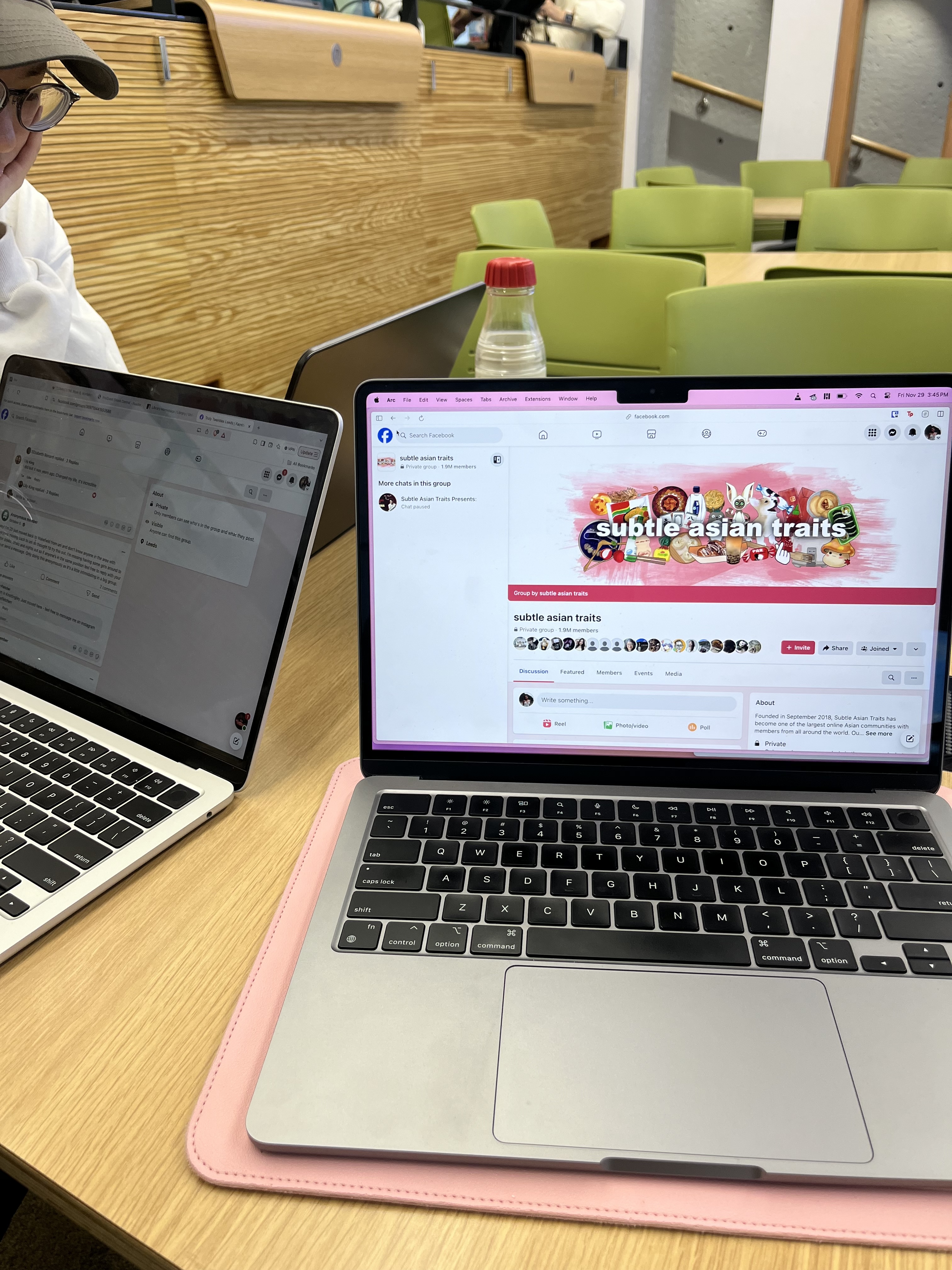 Moving forward to the next task, we discussed digital ethnography and the implications on said topic. For the assigned reading by Pink et. al, the chapter delves into how digital ethnography allows researchers to dive into the dynamic and interconnected "social worlds" we live in. It highlights that these environments are shaped by a mix of digital, material, and other interactions, that researchers must use adapatble and ethical methods in order to study their chosen subjects and environments effectively. In line with our task for this week, we had to choose an online community that we would consider ourselves a part of that shares some form of insider knowledge. For my case, I chose the group Subtle Asian Traits on Facebook which is a community group I joined during the pandemic. The mission of this group is to connect Asian individuals globally to create a community that celebrates the similarities and differences within the subtle traits of Asian culture and sub-cultures. I shared this among my group and gave them the basic information about it such as typing the name of the group on Facebook and before you can officially join, the admins of the group will check on whether they approve or diassprove you to join said group. As of this date, there are over 1.9 Million members of the group as well! When I shared this among my classmates, they noticed how the group was very respectful and lively, and that it was not being used for sponsorships or to promote products which they noticed was happening in their chosen groups.
